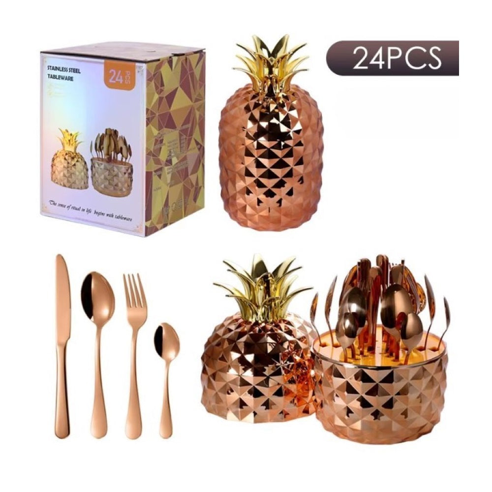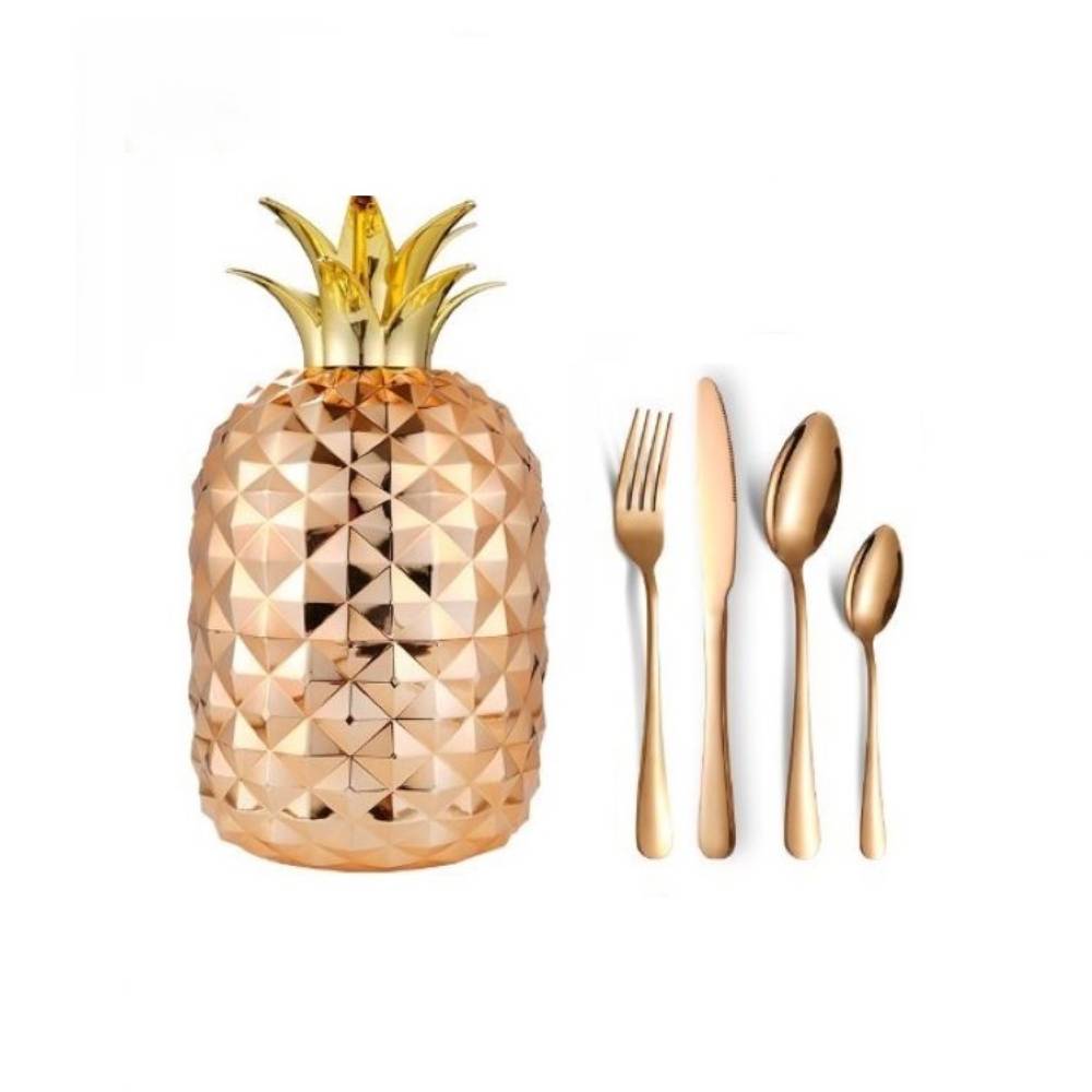 Juego Cubiertos Estuche Piña 24 Piezas Acero Inoxidable Oro R