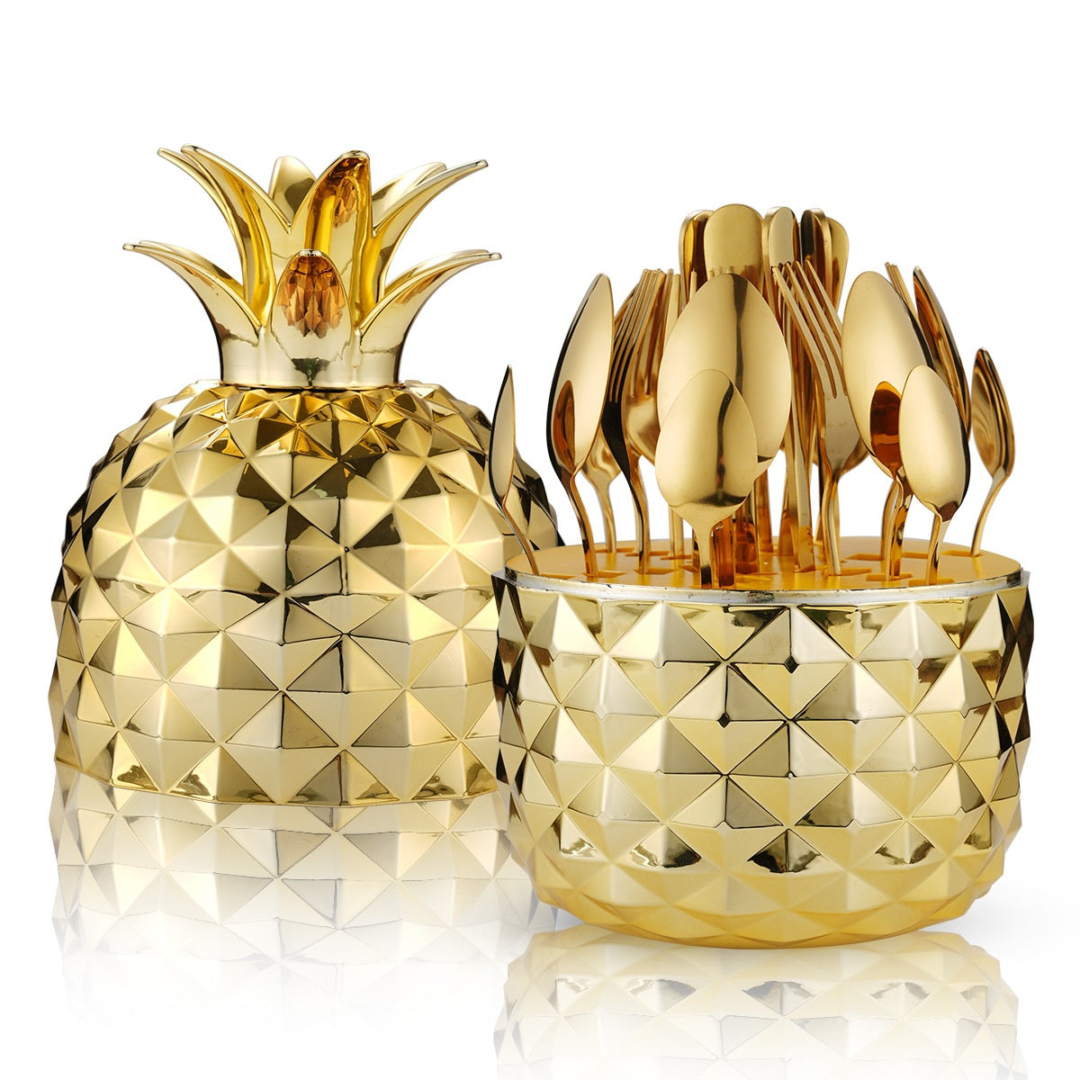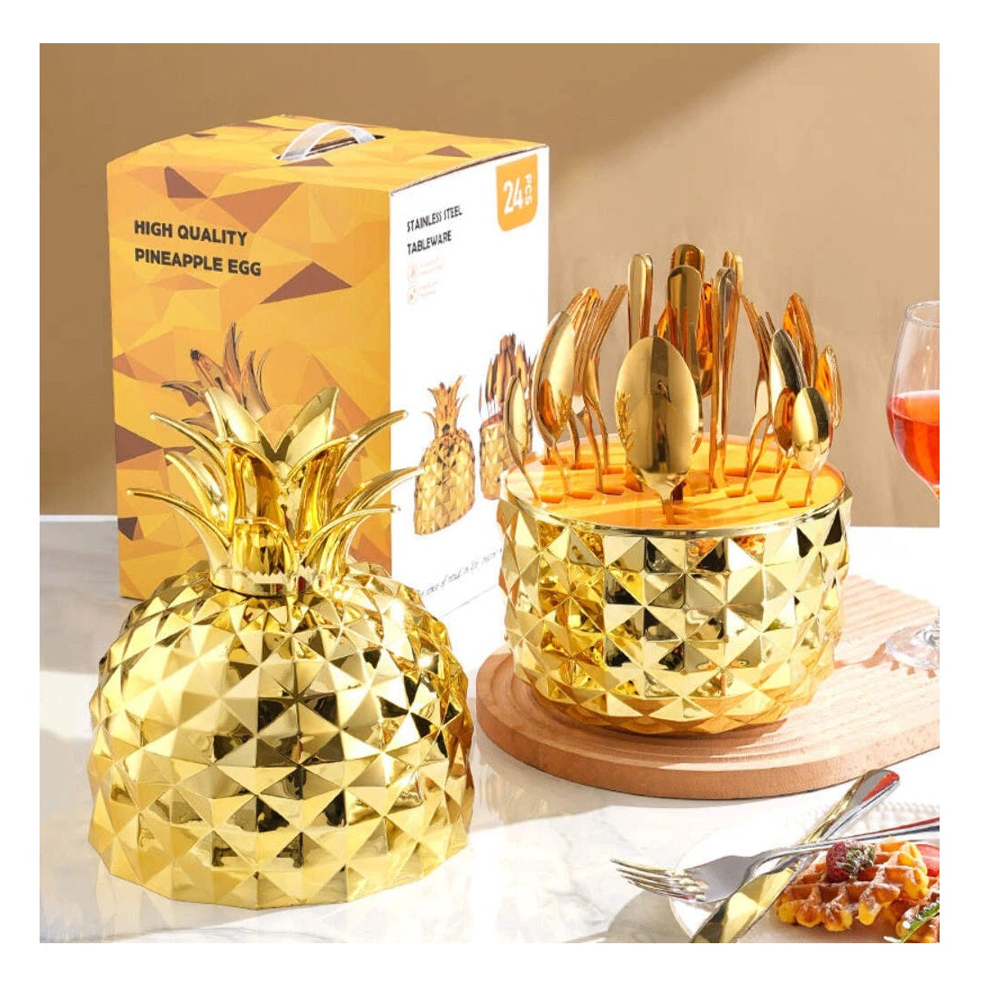 Juego De Cubiertos Estuche Piña 24 Piezas Acero Inoxidable