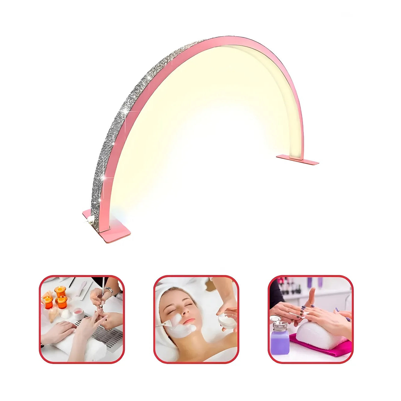 Amplia aplicación: la lámpara de belleza de media luna es adecuada para una variedad de aplicaciones de belleza, como belleza, arte de uñas y tatuaje de cejas. Un accesorio imprescindible para los profesionales de la belleza.