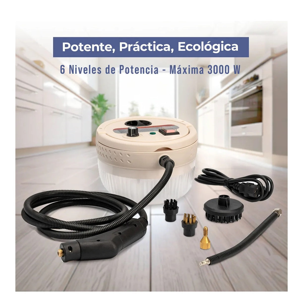 Si buscas una herramienta potente, práctica y ecológica para limpiar tu hogar o negocio, la Limpiadora a Vapor Portátil 3000W es la solución ideal. Con su sistema de alta presión y temperatura, elimina grasa, sarro, suciedad incrustada y bacterias sin químicos, cuidando el medio ambiente y protegiendo la salud de tu familia. Su diseño portátil y manguera flexible te permite llegar a rincones difíciles, logrando una limpieza profunda en cocinas, baños, tapicería, ventanas, pisos y más.