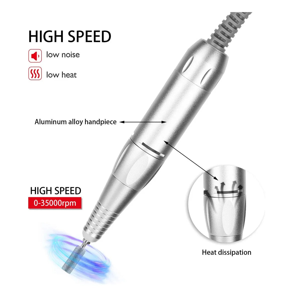 Rendimiento silencioso y suave: disfrute de alta velocidad con un rendimiento extremadamente silencioso y suave. Este taladro eléctrico de uñas proporciona una experiencia de vibración, por lo que es ideal para uso en máquinas pulidoras de uñas y reemplazo preciso de piezas de mano de taladro de uñas, incluso para usuarios profesionales de piezas de mano de taladro de uñas.