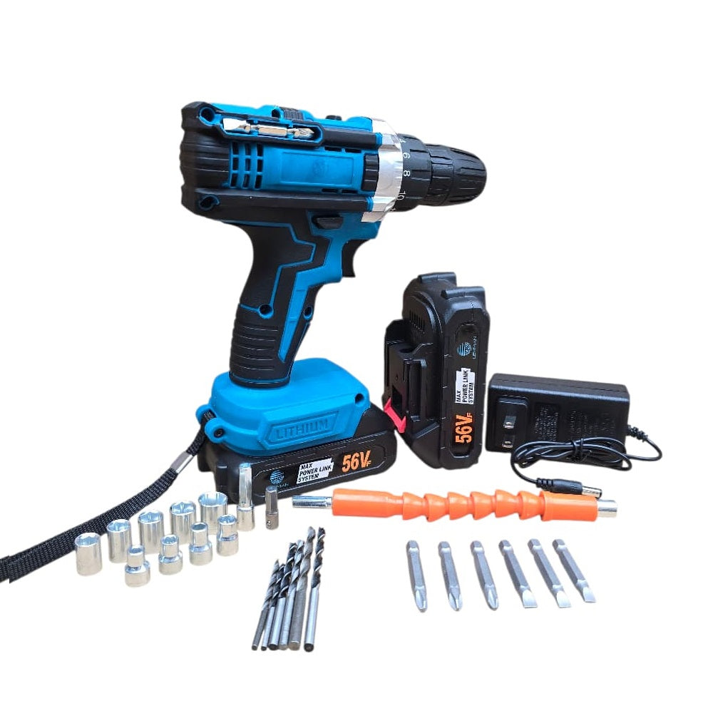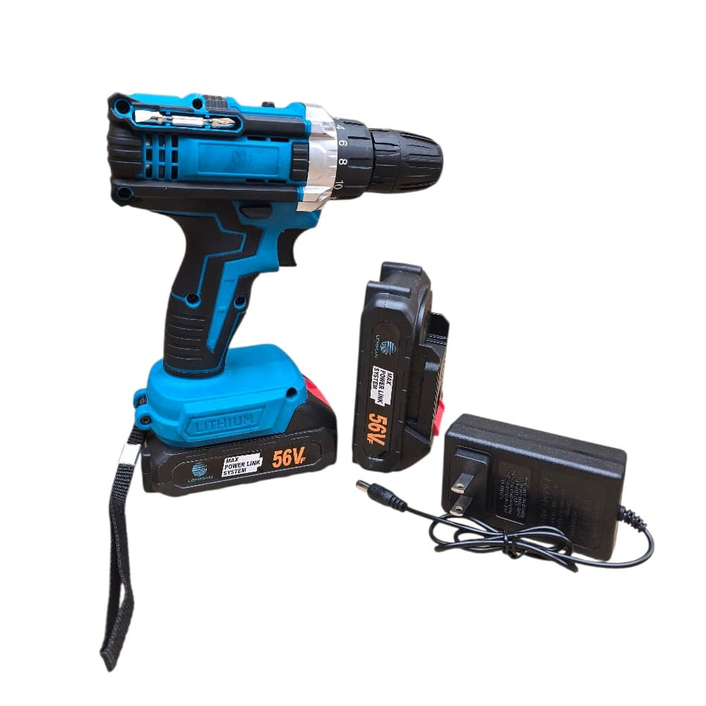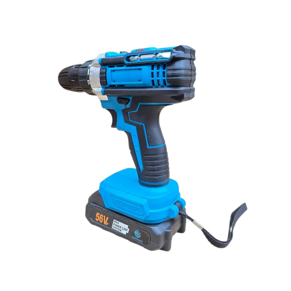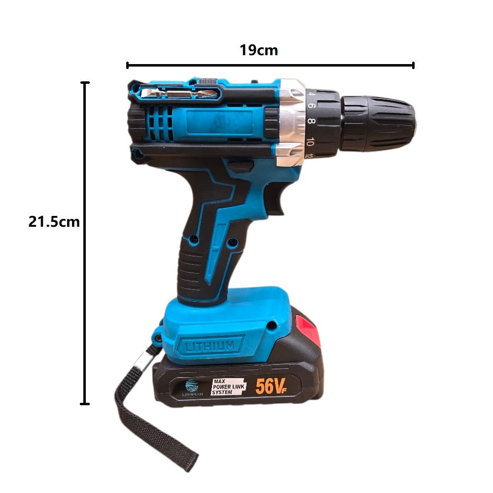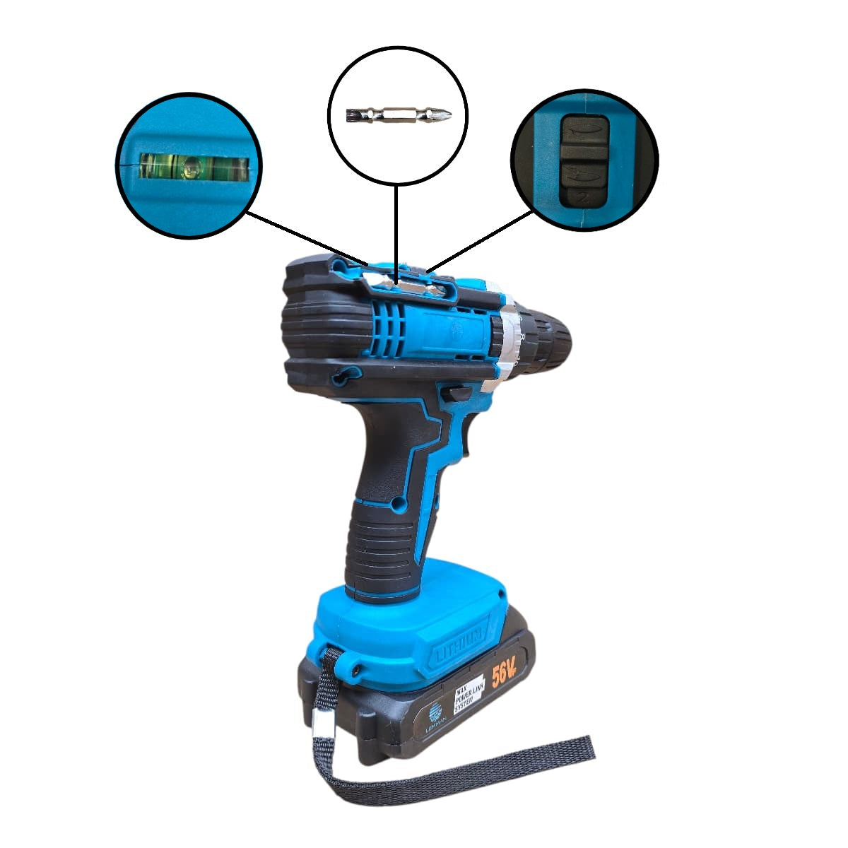 Taladro inalámbrico superior de 56V con cargador rápido. Potente kit de taladro eléctrico inalámbrico: el taladro está alimentado por un motor de alta velocidad, proporcionando un par máximo de 15 N.m-25 N.m.