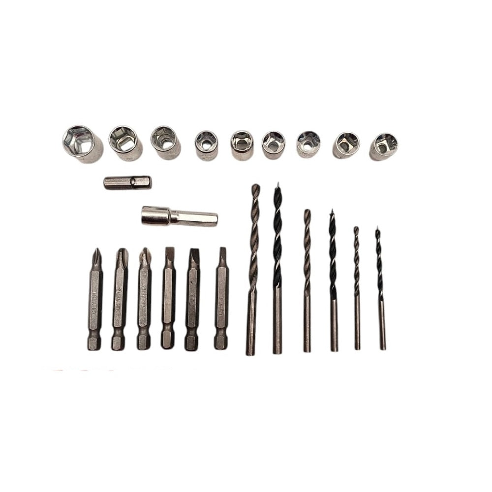 Recibirás: kit de herramientas de taladro baterías de 56V con 28 accesorios de herramientas eléctricas de taladro, 1 cargador, 2 baterías de litio e instrucciones de funcionamiento