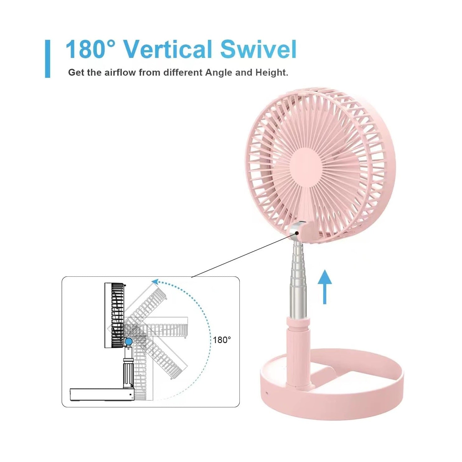 Ventilador Retráctil Recargable 180° 4 Velocidades PX-20321 Rosa