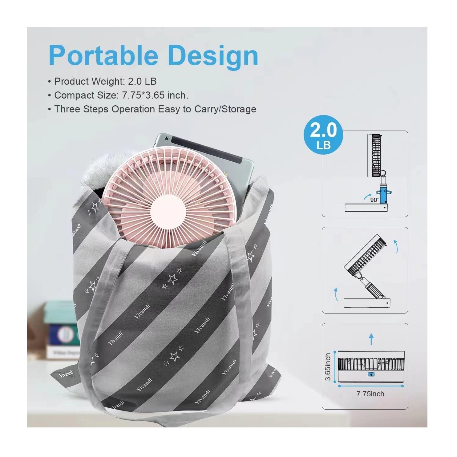 Portátil y compacto: su ventilador es extremadamente práctico y es ideal para el hogar, oficina, camping, viajes, actividades al aire libre.